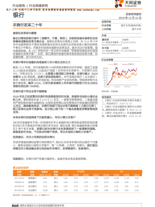 【天风证券】【20191221】银行业:农商行改革二十年-23页 行业研究