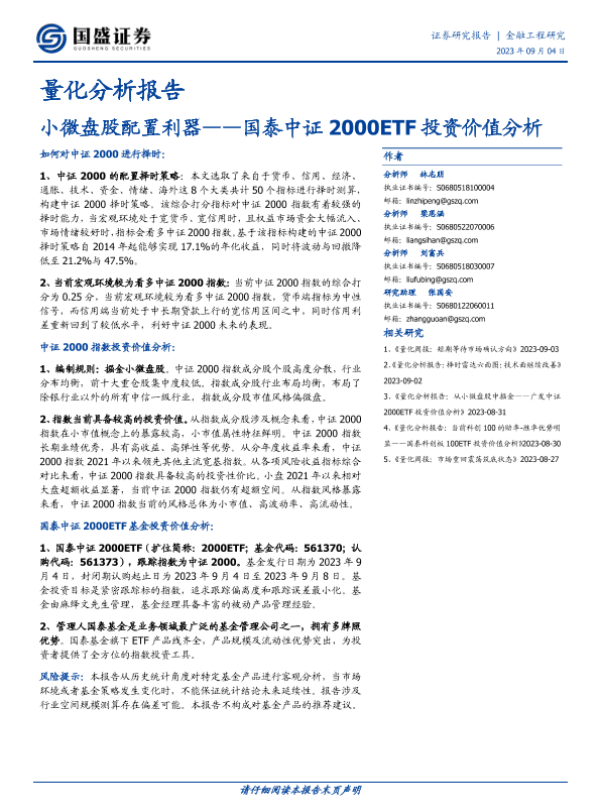 【国盛证券】【20230904】量化分析报告:国泰中证2000ETF投资价值分析,小微盘股配置利器-18页 行业研究