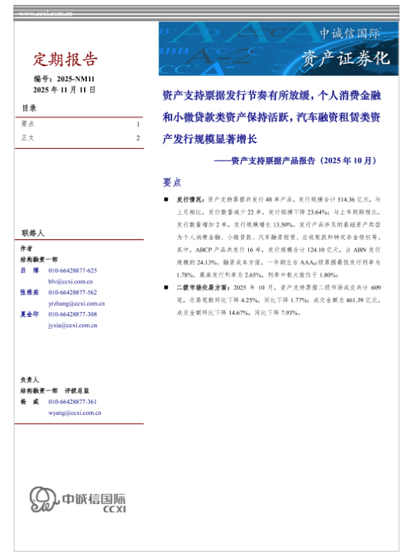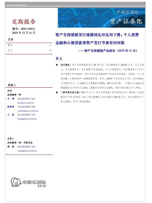 【中诚信国际】【202512】资产支持票据产品报告(2025年 11月)-6页 证券期货研究报告