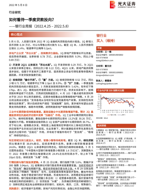 【光大证券】【20220508】如何看待一季度贷款投向-16页 行业研究