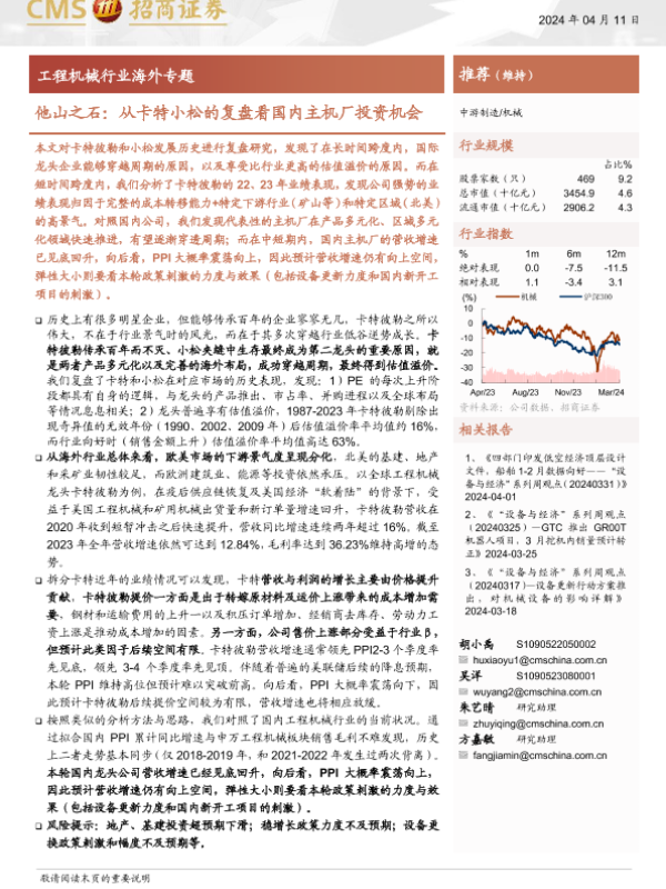 【海通证券】【20240411】他山之石:从卡特小松的复盘看国内主机厂投资机会-30页 行业研究