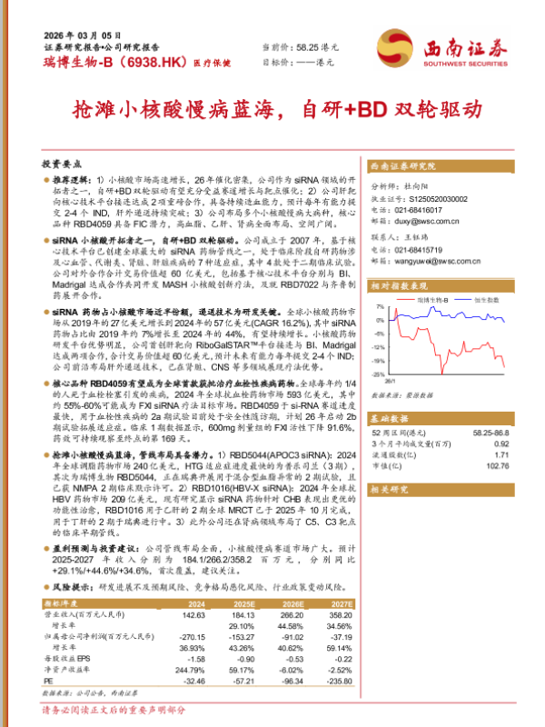 【西南证券】【202603】抢滩小核酸慢病蓝海,自研+BD双轮驱动-30页 证券期货研究报告
