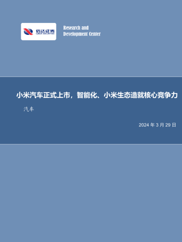 【信达证券】【20240329】汽车行业:小米汽车正式上市,智能化、小米生态造就核心竞争力-10页 行业研究