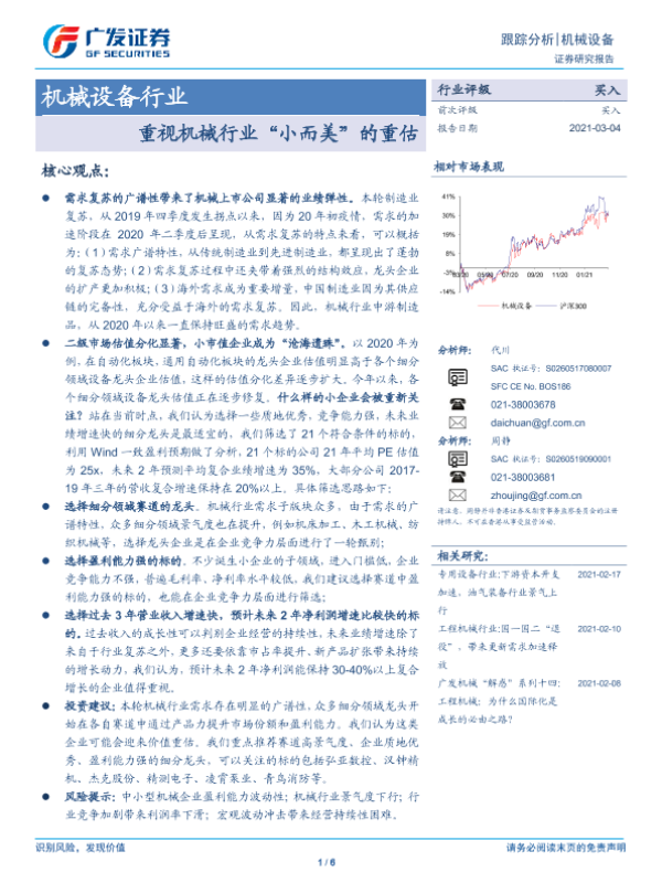 【广发证券】【20210304】重视机械行业“小而美”的重估-6页 行业研究
