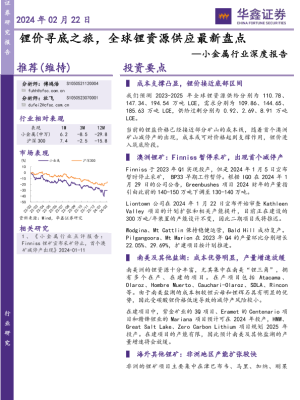 【华鑫证券】【20240223】2024-02-23-小金属行业深度报告-锂价寻底之旅-全球锂资源供应最新盘点-48页 行业研究
