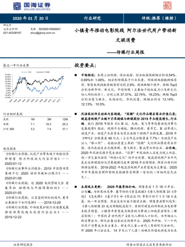 【国海证券】【20200120】小镇青年推动电影院线 阿尔法世代用户带动新文娱消费-17页 行业研究