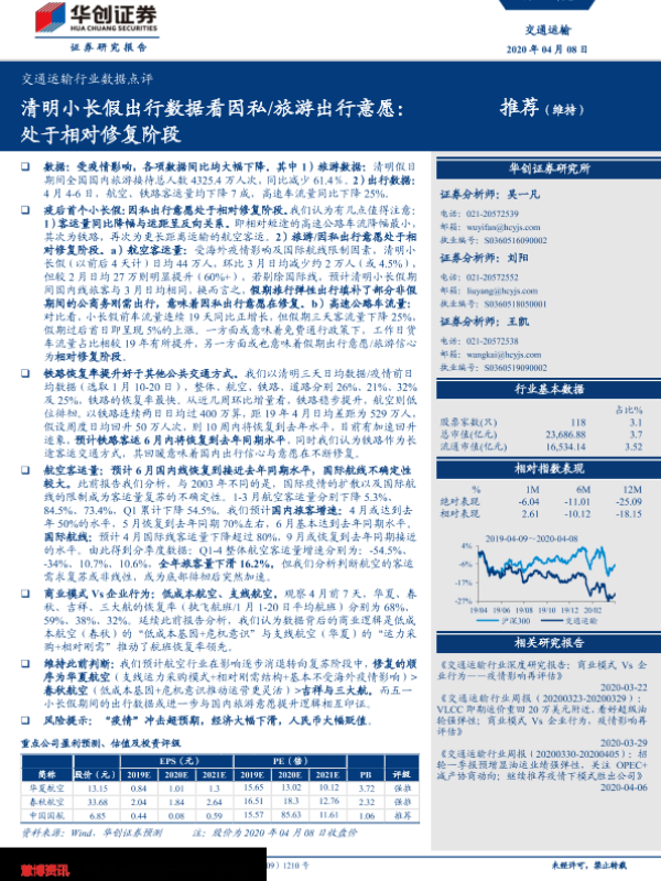 【华创证券】【20200408】交通运输行业数据点评:清明小长假出行数据看因私旅游出行意愿:处于相对修复阶段-12页 行业研究