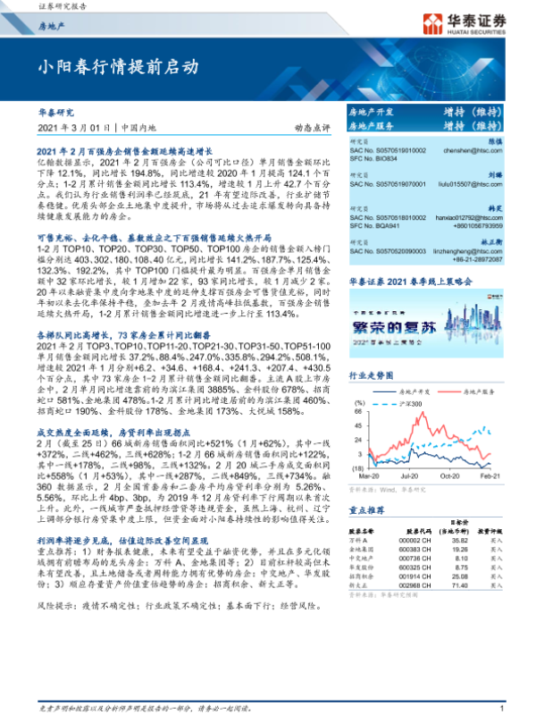 【华泰证券】【20210301】小阳春行情提前启动-7页 行业研究
