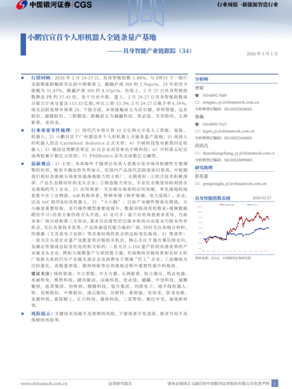 【银河证券】【202603】新能源智造行业具身智能产业跟踪(34):小鹏官宣首个人形机器人全链条量产基地-11页 证券期货研究报告