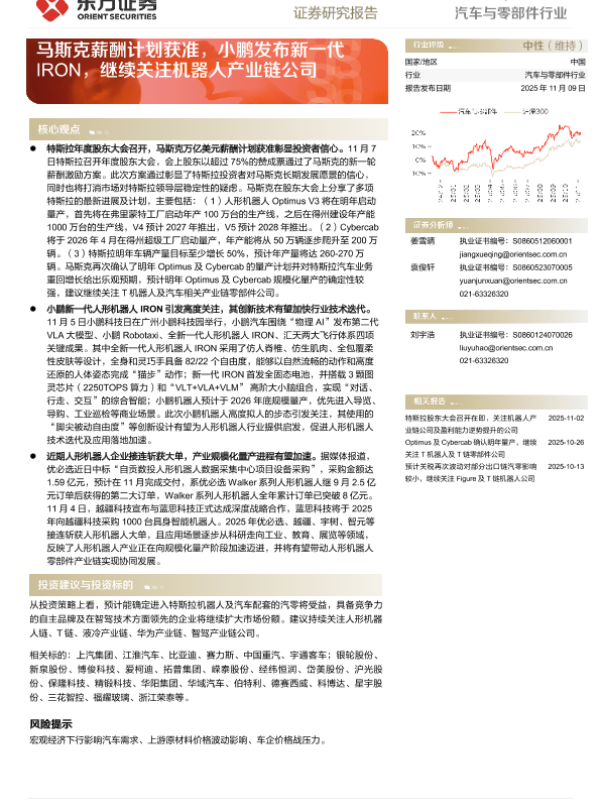 【华鑫证券】【202511】汽车行业周报:Optimus V2.5亮相股东大会,小鹏发布新一代Iron机器人及VLA模型-35页 证券期货研究报告