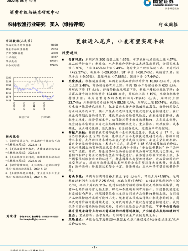 【国金证券】【20220619】20220619-国金证券-农林牧渔行业研究:夏收进入尾声,小麦有望实现丰收-15页 行业研究