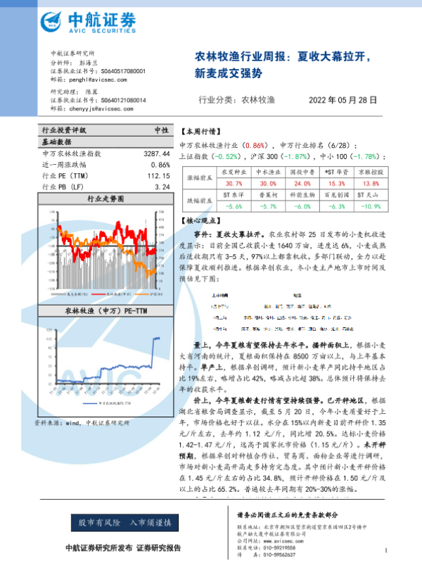 【中航证券】【20220528】20220528-中航证券-农林牧渔行业周报:夏收大幕拉开,新麦成交强势-11页 行业研究