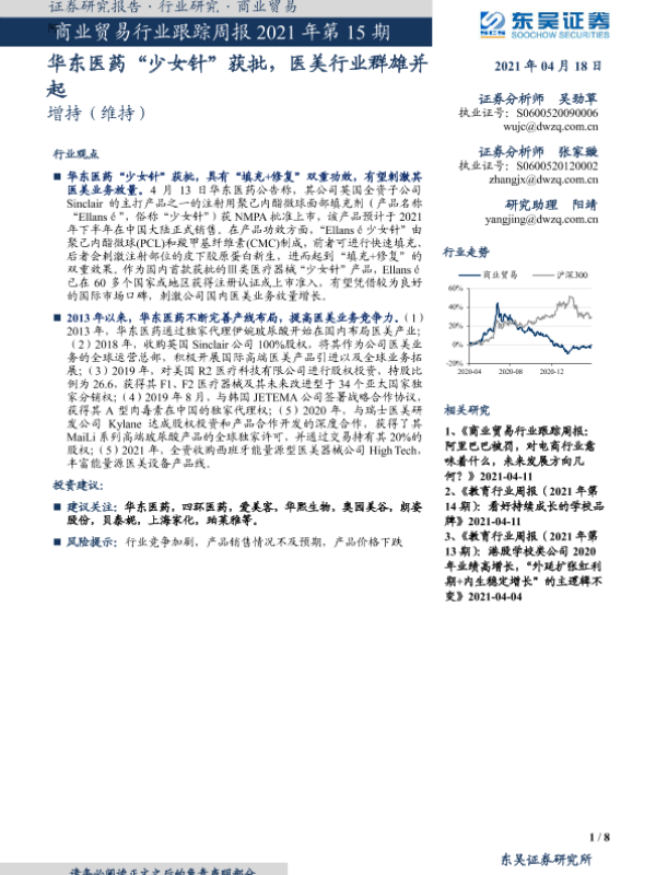 【东吴证券】【20210418】商业贸易行业跟踪周报2021年第15期:华东医药“少女针”获批,医美行业群雄并起-8页 行业研究