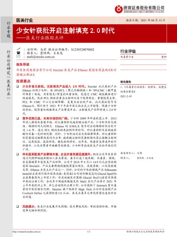 【浙商证券】【20210415】少女针获批开启注射填充2.0时代-2页 行业研究