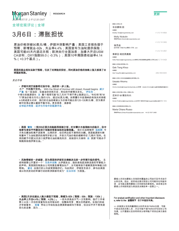 【Morgan Stanley】【202403】Global Macro Commentary|Global March 6 Stagflation Concerns-13页 宏观策略