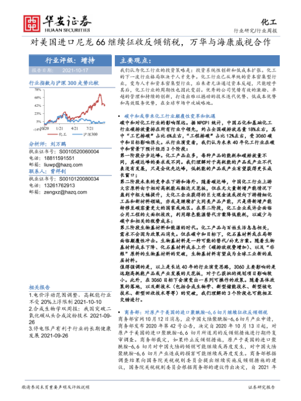 【华安证券】【20211017】20211017-华安证券-化工行业周报:对美国进口尼龙66继续征收反倾销税,万华与海康威视合作-58页 行业研究