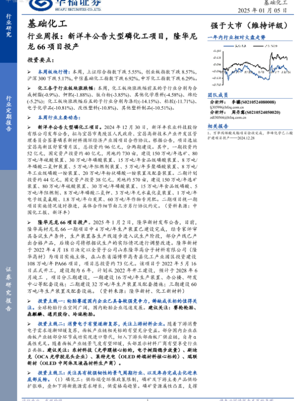 【华福证券】【20250105】基础化工行业周报:新洋丰公告大型磷化工项目,隆华尼龙66项目投产-22页 行业研究