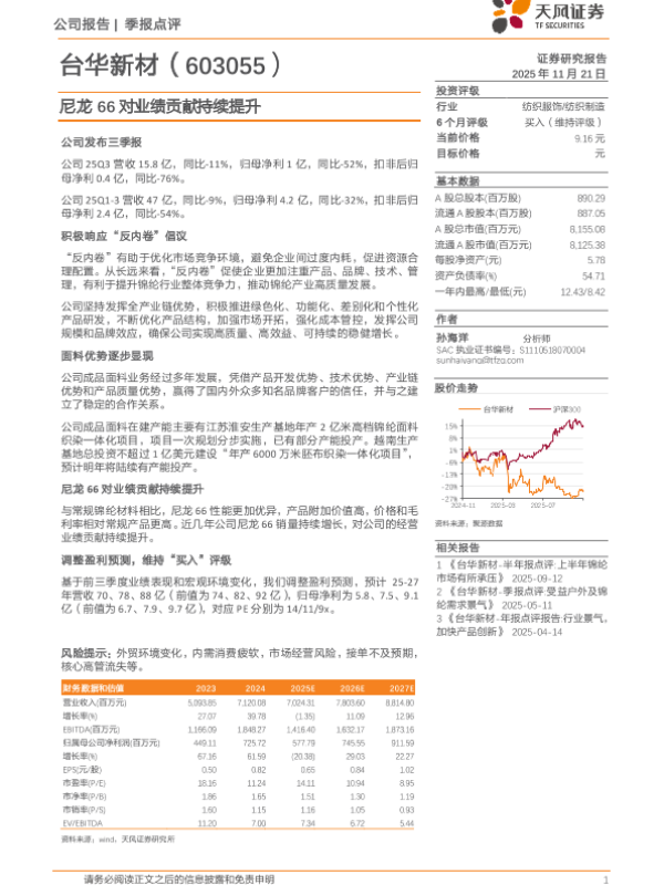 【天风证券】【202511】台华新材-季报点评 受益户外及锦纶需求景气-3页 证券期货研究报告