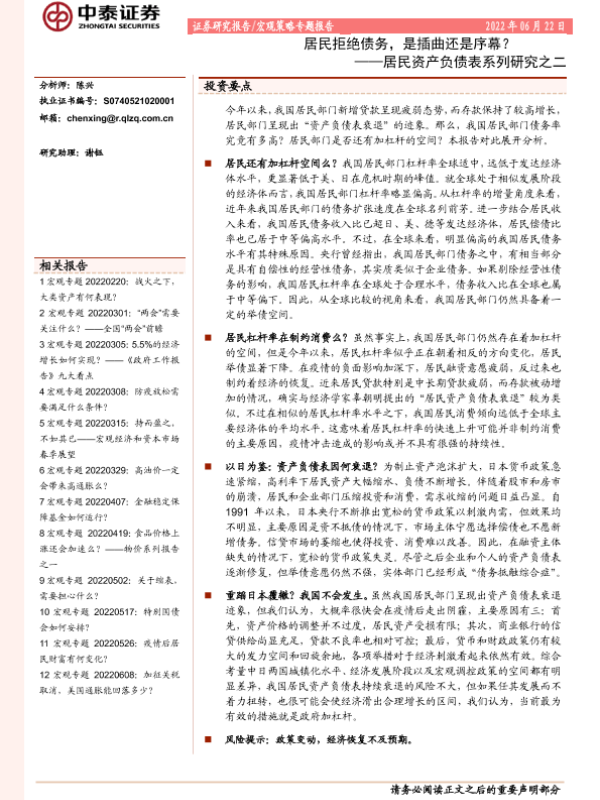 【中泰证券】【20220622】居民拒绝债务,是插曲还是序幕?——居民资产负债表系列研究之二-16页 宏观策略