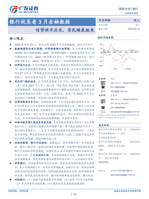 【广发证券】【20230412】银行视角看3月金融数据:信贷供不应求,居民缩表结束-19页 行业研究