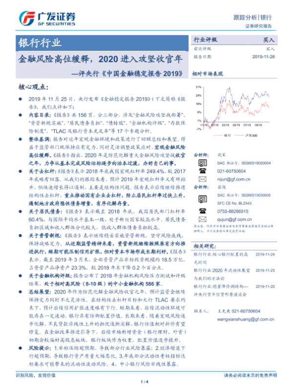 【广发证券】【20191126】评央行《中国金融稳定报告2019》:金融风险高位缓释,2020进入攻坚收官年-4页 行业研究