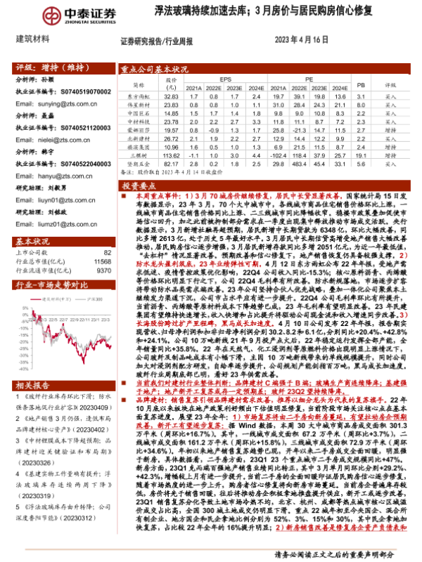 【中泰证券】【20230416】浮法玻璃持续加速去库;3月房价与居民购房信心修复-24页 行业研究