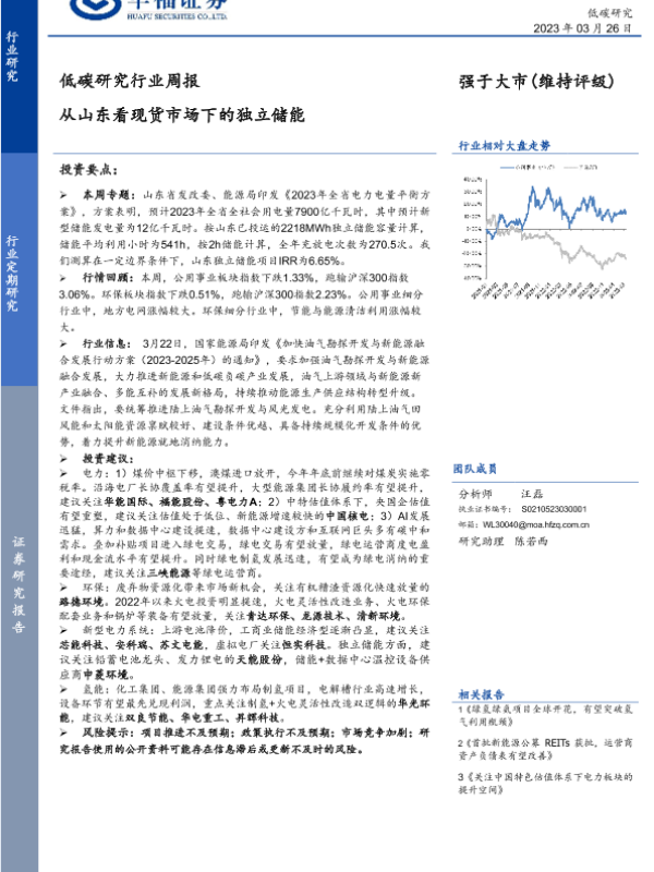 【华福证券】【20230326】从山东看现货市场下的独立储能-18页 行业研究