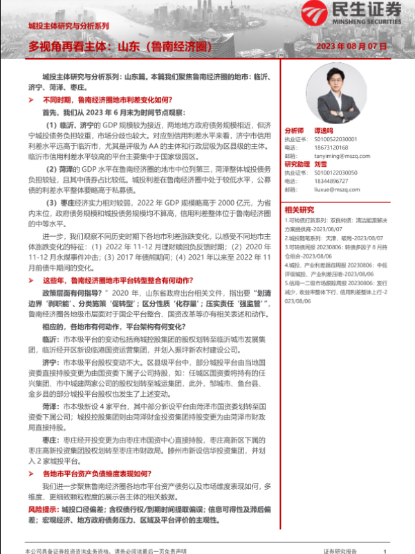【民生证券】【20230807】城投主体研究与分析系列:多视角再看主体,山东(鲁南经济圈)-21页 行业研究
