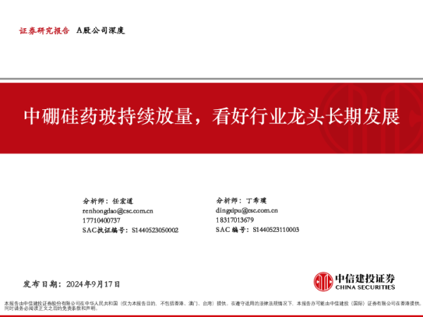 【中信建投证券】【20240917】山东药玻(600529)中硼硅药玻持续放量,看好行业龙头长期发展-58页 行业研究