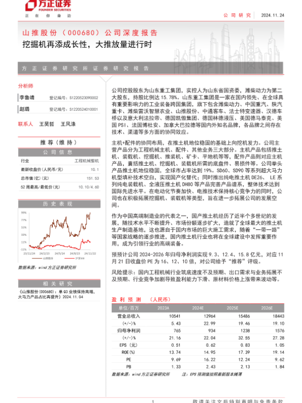 【方正证券】【20241124】山推股份(000680)公司深度报告:挖掘机再添成长性,大推放量进行时-20页 行业研究