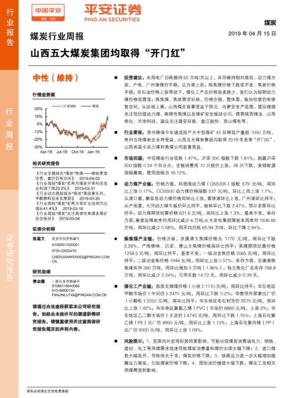 【平安证券】【20190415】20190415-平安证券-煤炭行业周报:山西五大煤炭集团均取得“开门红”-5页 行业研究