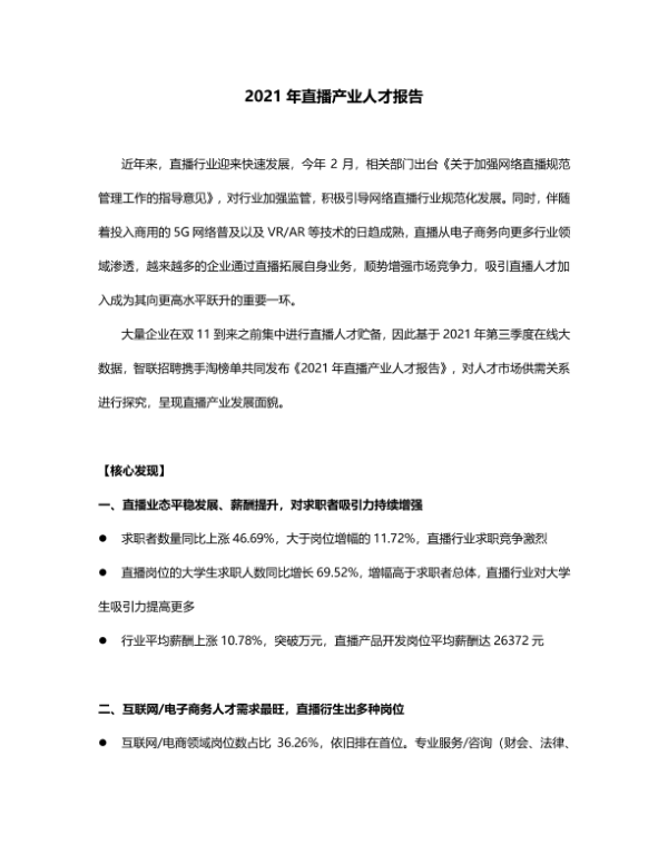 【智联招聘】【20210101】2021年直播产业人才报告-13页 行业研究