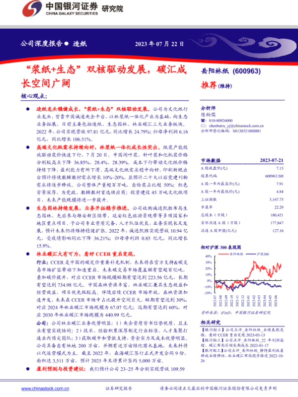 【银河证券】【20230722】“浆纸+生态”双核驱动发展,碳汇成长空间广阔-34页 行业研究