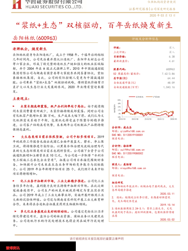 【华西证券】【20200313】“浆纸+生态”双核驱动,百年岳纸焕发新生-29页 行业研究