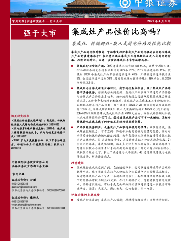 【中银证券】【20210408】集成灶、传统烟灶+嵌入式厨电价格及性能比较:集成灶产品性价比高吗?-15页 行业研究
