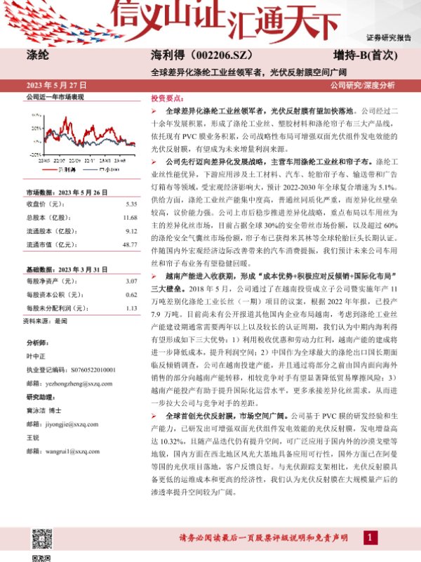 【山西证券】【20230527】全球差异化涤纶工业丝领军者,光伏反射膜空间广阔-40页 行业研究