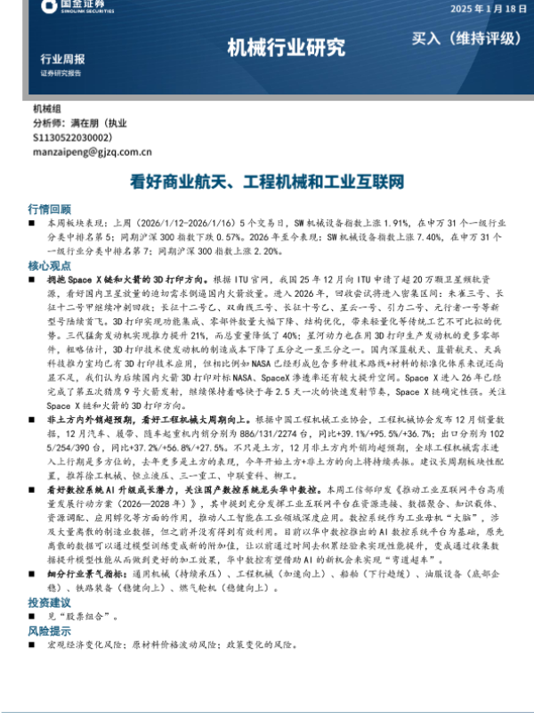 【国金证券】【202601】机械行业研究:看好商业航天、工程机械和工业互联网-15页 证券期货研究报告