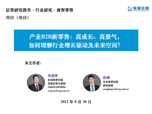 【东吴证券】【20220830】产业B2B新零售:高成长、高景气,如何理解行业增长驱动及未来空间?-52页 行业研究