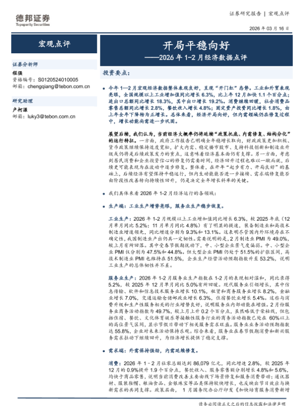【德邦证券】【202603】开局平稳向好——2026年 1-2月经济数据点评-5页 证券期货研究报告
