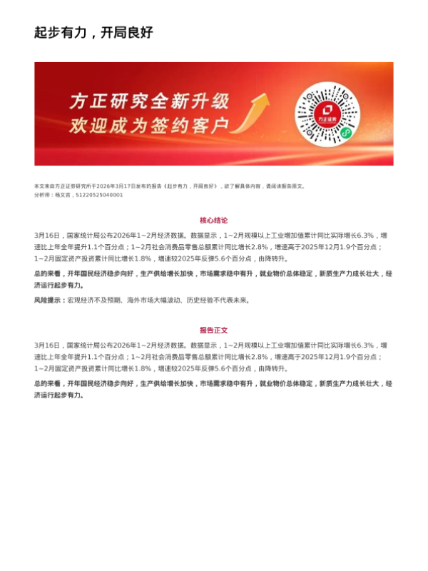 【方正证券】【202603】起步有力,开局良好-7页 证券期货研究报告