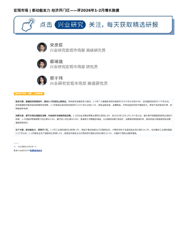 【兴业研究】【202603】宏观市场|新动能发力|经济开门红——评2026年1-2月增长数据-4页 证券期货研究报告