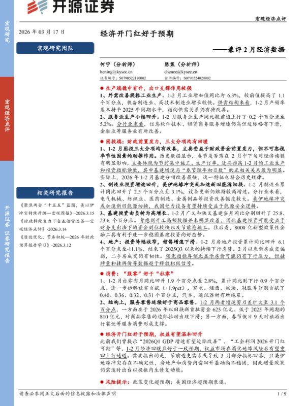 【开源证券】【202603】经济开门红好于预期——兼评2月经济数据-9页 证券期货研究报告