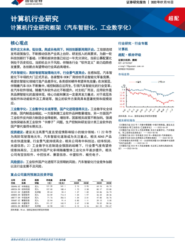 【国信证券】【20220606】计算机行业2022年6月投资策略:关注工业数字化、汽车智能化、军工信息化投资机会-14页 行业研究