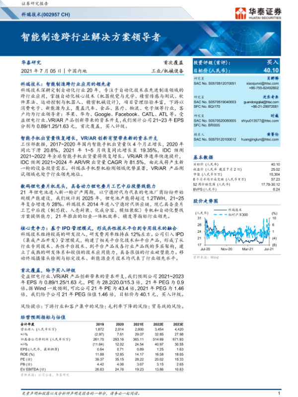 【华泰证券】【20210705】科瑞技术:智能制造跨行业解决方案领导者-25页 行业研究