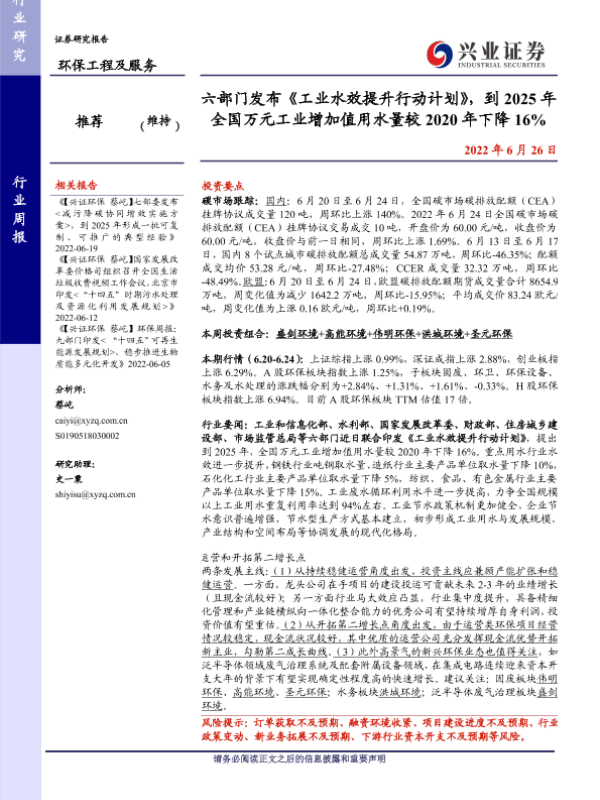 【兴业证券】【20220626】六部门发布《工业水效提升行动计划》,到2025年全国万元工业增加值用水量较2020年下降16%-10页 行业研究