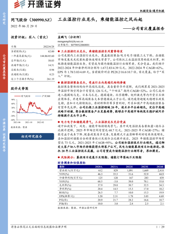 【开源证券】【20220629】同飞股份-公司首次覆盖报告:工业温控行业龙头,乘储能温控之风而起-29页 公司研究