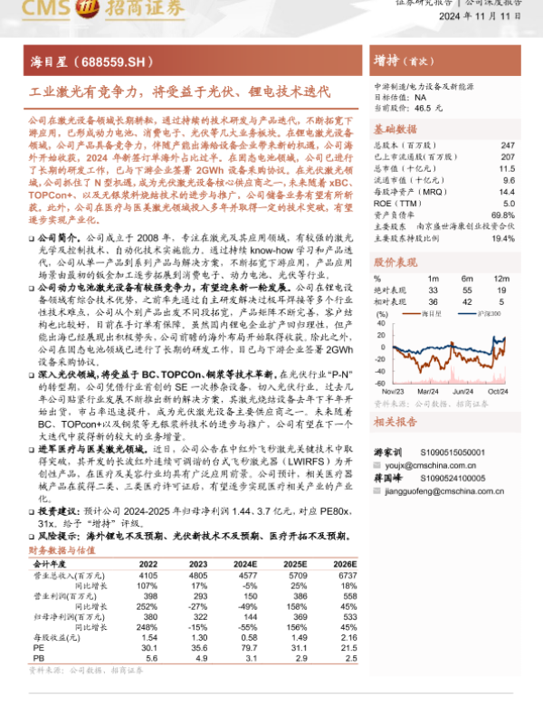 【海通证券】【20241111】工业激光有竞争力,将受益于光伏、锂电技术迭代-20页 行业研究