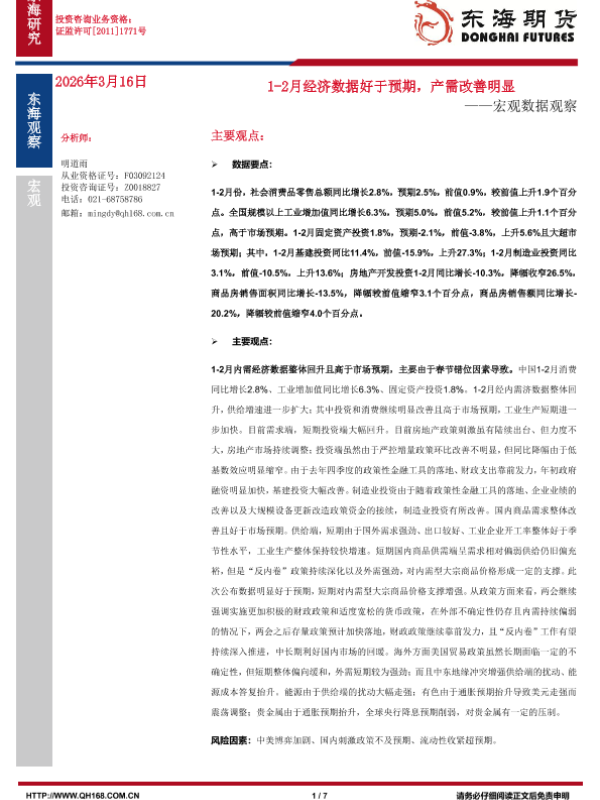 【东海期货研究所】【202603】1-2月经济数据好于预期,产需改善明显——宏观数据观察-7页 证券期货研究报告