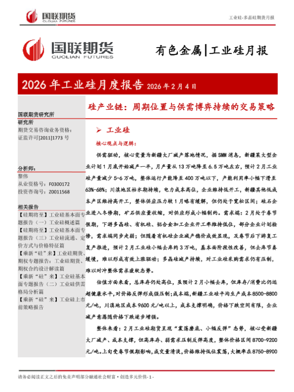 【国联期货研究所】【202602】2026年工业硅月度报告 硅产业链:周期位置与供需博弈持续的交易策略-26页 证券期货研究报告