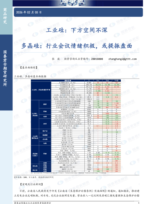 【国泰君安期货】【202602】工业硅_下方空间不深_多晶硅_行业会议情绪积极_或提振盘面-3页 证券期货研究报告